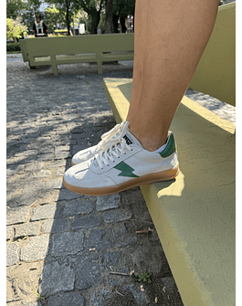 Cuero gamuza rojo, rayo y colita cuero blanco, interior cuero, base cafe TR, horma normal